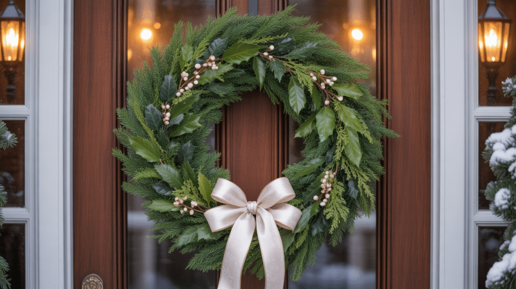 This simple addition brings texture, color, and a sense of festive cheer to your doorway. You can select natural materials for a rustic look or opt for metallic ornaments to create a more elegant style. Either way, this classic piece helps set a joyful tone as guests arrive, making your entry feel thoughtfully decorated. It also pairs beautifully with other accents like lanterns or garlands.