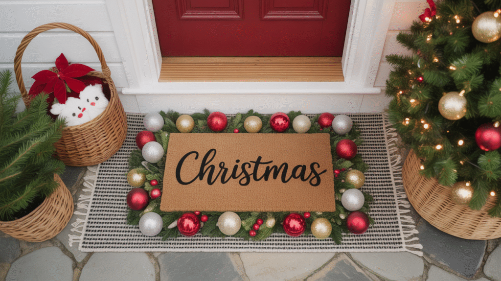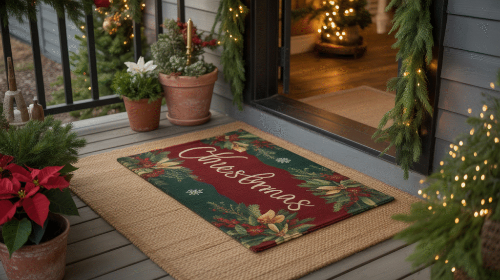 A festive doormat is a simple yet impactful way to welcome guests with personality and charm. Whether you choose a classic “Merry Christmas” design or a playful winter pattern, a holiday doormat adds an inviting touch to your entryway. This easy upgrade beautifully complements your Christmas Entryway Decor, helping set a cheerful tone right at the doorstep.