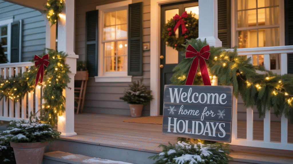 These signs come in a variety of styles—farmhouse, modern, vintage, or minimalist—allowing you to match your overall holiday aesthetic. You can place the sign leaning against the wall, pair it with lanterns, or surround it with greenery for a more festive look. The versatility of porch signs makes them a great addition to both large porches and small entryways.