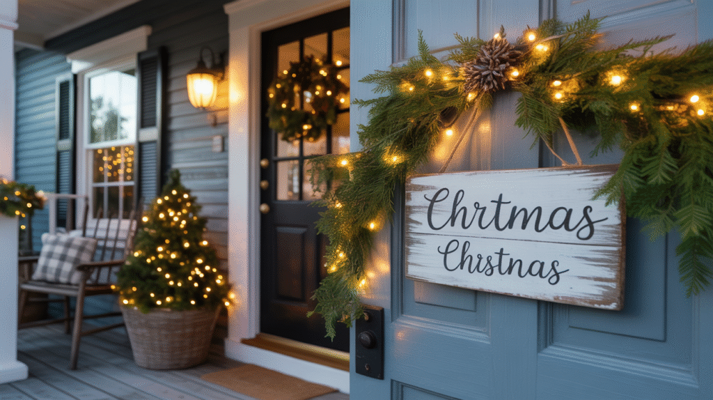 Incorporating a winter-themed sign into your Christmas Entryway Decor blends perfectly with elements like seasonal front porch accents, holiday entryway styling, and cozy winter doorway details. This simple yet impactful feature helps create a warm, inviting, and cheerful atmosphere for everyone who steps up to your door.