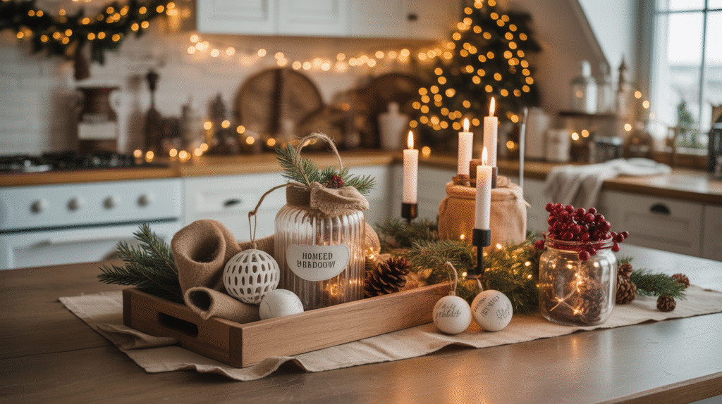 For a cohesive look, ensure that handmade décor is distributed thoughtfully across the kitchen and dining areas, balancing the natural greenery, table linens, and lighting. This attention to detail ensures your farmhouse Christmas kitchen inspiration feels curated, warm, and ready to impress every guest.