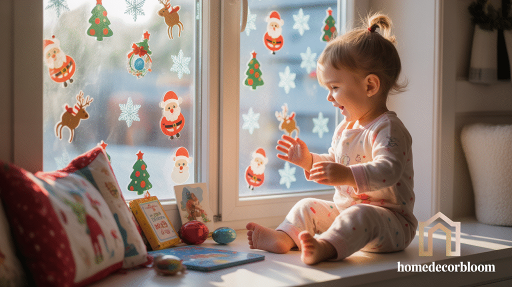 Window clings are one of the easiest ways to brighten up any child’s room and enhance your Christmas Decorations For Kids without overspending. These colorful, reusable stickers come in fun shapes like snowflakes, Santa, reindeer, and Christmas trees—perfect for sparking a child’s imagination.