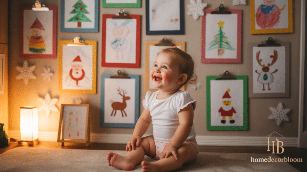 This display becomes a proud showcase of your child’s imagination while also transforming the room with vibrant, kid-friendly Christmas visuals. It’s a heartfelt and low-cost way to enhance your Christmas Decorations For Kids and make the space feel uniquely theirs.