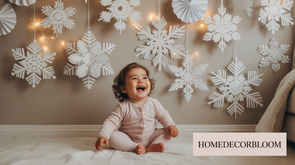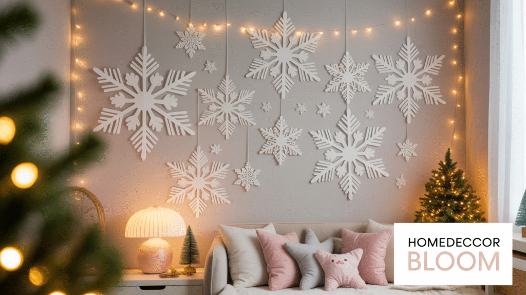One of the easiest and most charming Christmas Decorations For Kids is making DIY paper snowflakes to decorate their walls. Kids love crafting them, and you can create dozens using simple white paper, scissors, and creativity. These snowflakes instantly add a wintery, magical vibe to any child’s room.