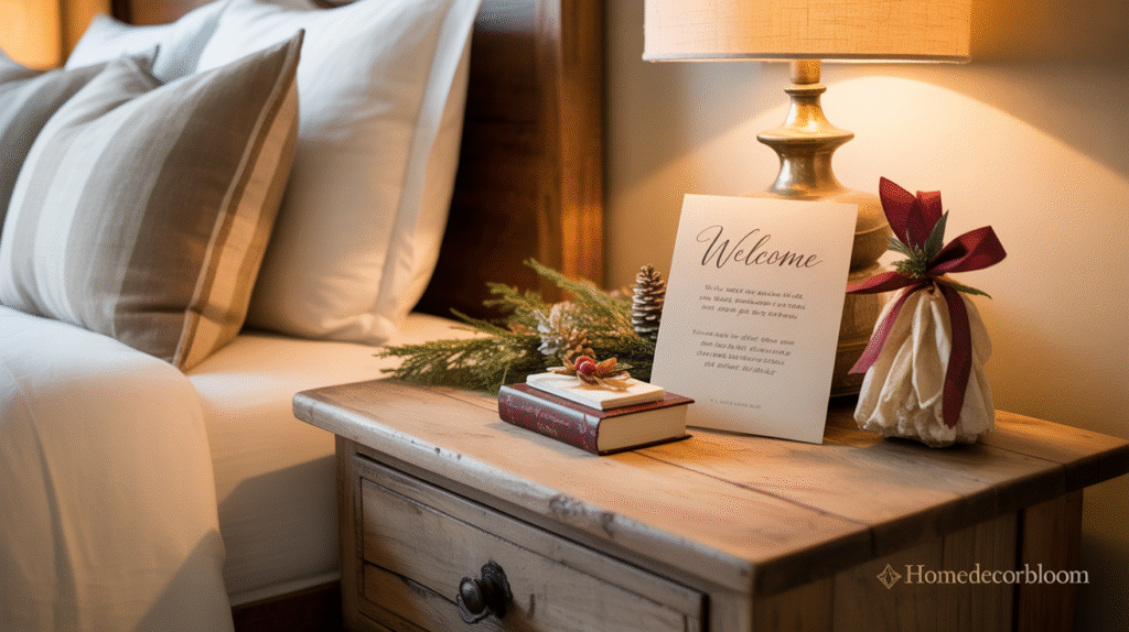 Small details — like accent pillows, tabletop décor, and personal welcome items — elevate the space from ordinary to memorable, creating an environment where guests feel cared for and at home. By combining practical elements with aesthetic touches, you ensure that the room is not only beautiful but also functional, meeting the needs of all visitors during the holiday season.