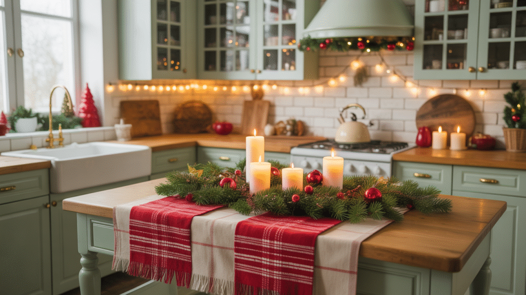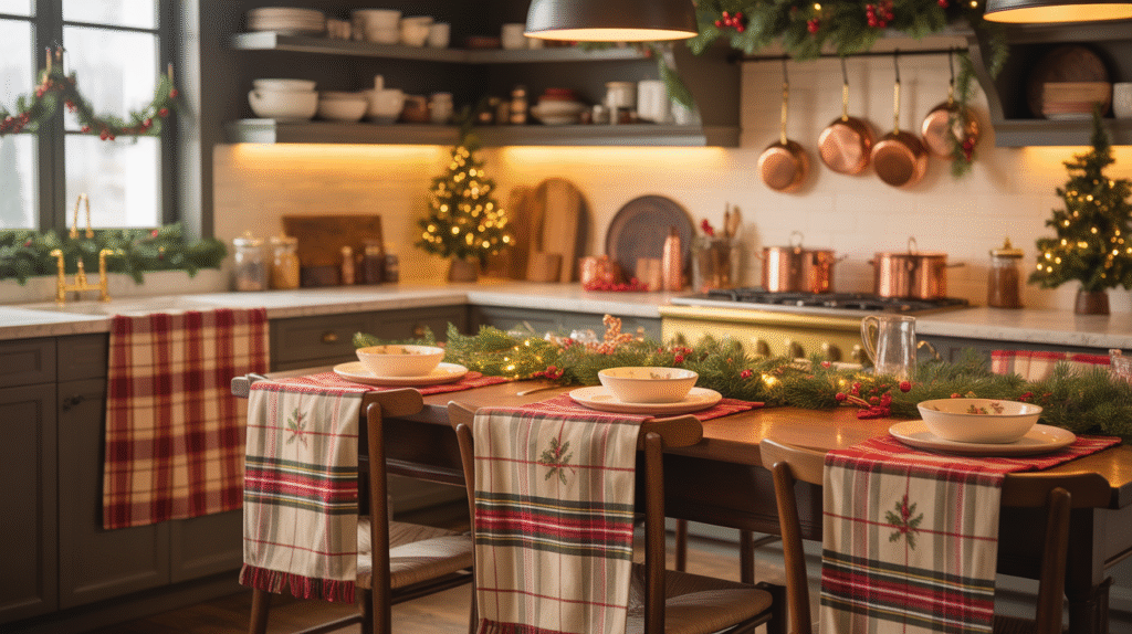 1: Warm Christmas Textiles for a Soft and Inviting Kitchen