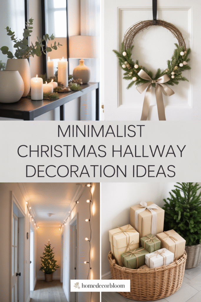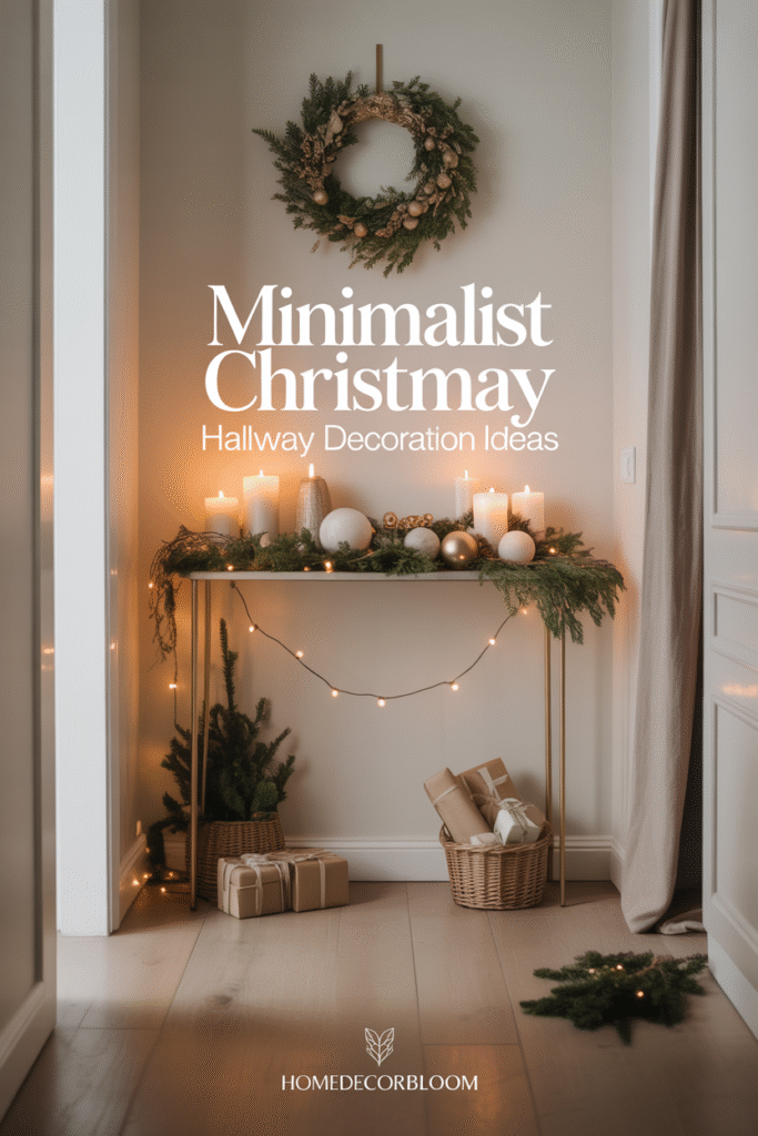 Minimalist Christmas décor focuses on neutral colors, subtle textures, and thoughtful accents such as greenery, metallic ornaments, or soft lighting. Related phrases like modern holiday hallway décor, simple Christmas entryway ideas, minimal festive styling, and clean holiday interior design are naturally incorporated to strengthen SEO while attracting readers looking for sophisticated, understated holiday inspiration.
