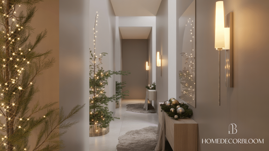 Well-placed lighting transforms your hallway into an inviting and elegant space that balances simplicity with holiday charm. Thoughtful illumination ensures your Minimalist Christmas Hallway Decoration feels cozy, sophisticated, and visually harmonious for guests.