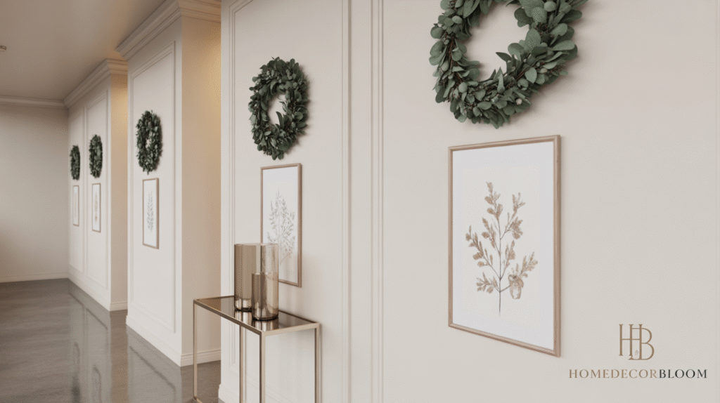 Minimalist décor focuses on quality over quantity. Carefully chosen accents like small wreaths, simple fairy lights, curated table or shelf displays, and understated floor décor create a harmonious and visually pleasing environment. This approach ensures your modern holiday hallway décor feels intentional, stylish, and welcoming to guests.