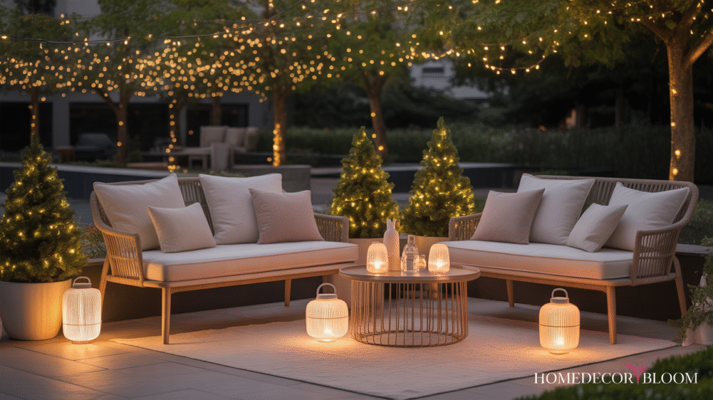 10: Cozy Outdoor Seating Area with Warm Lighting