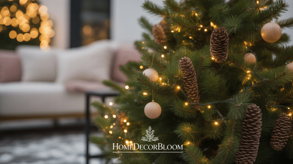 A minimalist outdoor Christmas tree decorated with warm lights is a stunning way to enhance your Outdoor Christmas Decor with Warm Lighting. Instead of overloading the tree with ornaments, focus on soft glowing string lights and simple natural accents such as pinecones or wooden ornaments. This approach creates a refined, cozy holiday ambiance that fits perfectly with minimalist outdoor styling.
