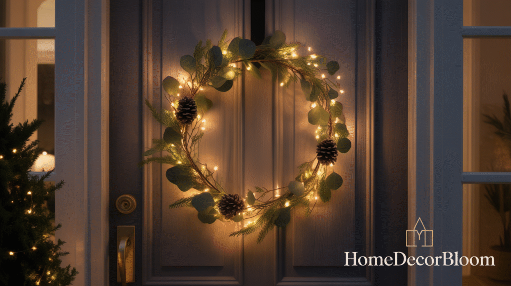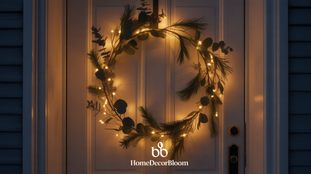 Wreaths with warm lighting are versatile and easy to update each year. Adding a few fairy lights or small LED bulbs ensures your Outdoor Christmas Decor with Warm Lighting remains elegant and inviting. This approach balances tradition with modern minimalism, creating a welcoming ambiance for guests while keeping your holiday style understated and stylish.
