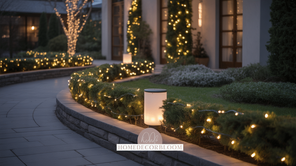 Pathway lighting also allows flexibility in your holiday setup. You can easily adjust the number of lights or reposition them each year to suit your space. This approach keeps your Outdoor Christmas Decor with Warm Lighting fresh, modern, and effortlessly charming. Guests will immediately feel the festive spirit as they approach your home, making a strong first impression without excessive decoration.