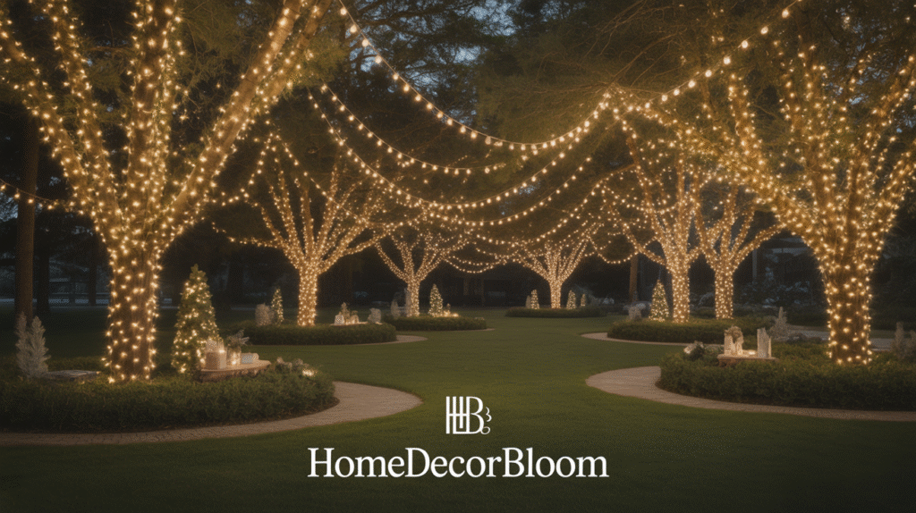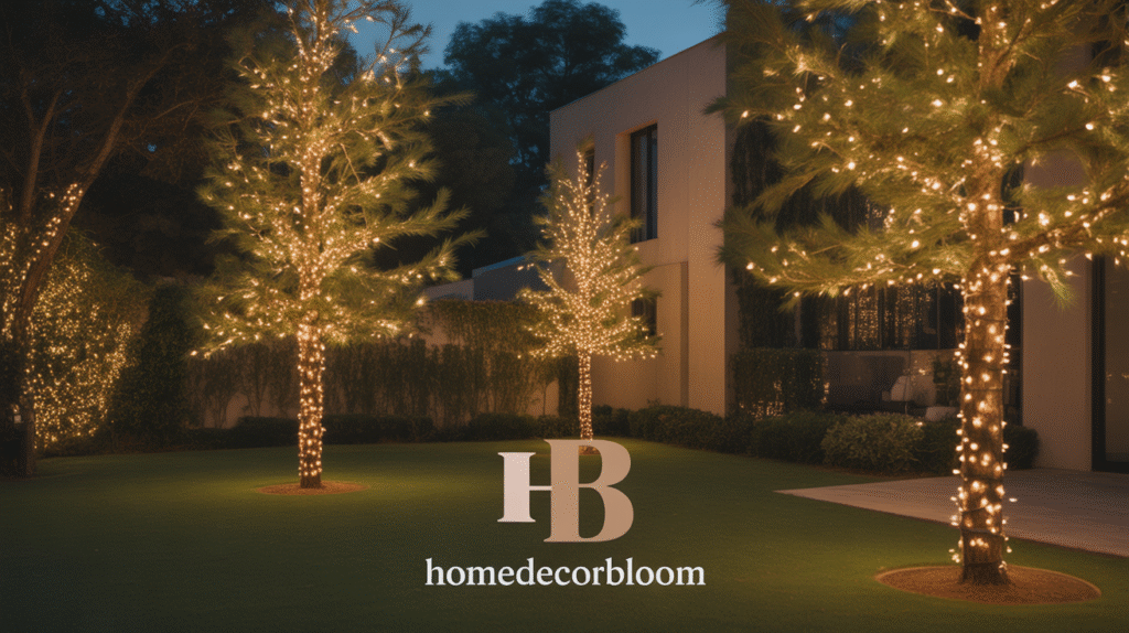 Hanging fairy lights also offers flexibility—you can easily adjust the density or placement each year to refresh your Outdoor Christmas Decor with Warm Lighting. Whether you have a single statement tree or multiple small trees, this technique enhances your outdoor space with charm and sophistication, making your holiday decor feel inviting and serene.
