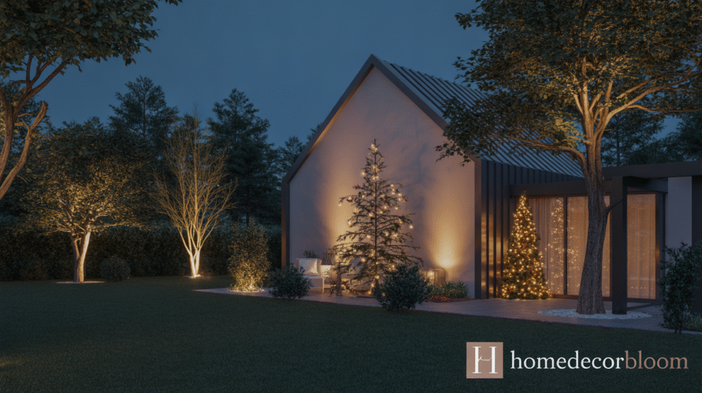 For a minimalist look, avoid excessive lighting and focus on key focal points such as a statement tree, porch pillars, or a garden sculpture. Combining warm spotlights with subtle holiday accents like small ornaments or natural garlands enhances the overall charm while keeping your outdoor decor uncluttered and refined.