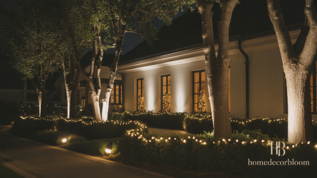 Highlighting your home’s architecture or garden features with warm spotlights is a simple way to elevate your Outdoor Christmas Decor with Warm Lighting. Strategic placement of small, focused lights on trees, shrubs, or decorative elements can create a dramatic yet elegant effect. Using soft warm LED spotlights ensures the illumination feels cozy and festive without being harsh.