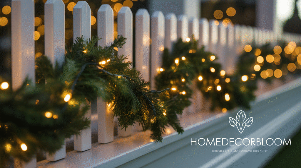 Using warmly lit outdoor Christmas garlands is a stylish way to enhance your Outdoor Christmas Decor with Warm Lighting while keeping a minimalist aesthetic. Draping garlands along railings, fences, or doorways creates a soft, festive glow that highlights your outdoor architecture. Opt for natural green garlands with subtle warm LED lights to achieve a sophisticated holiday look.