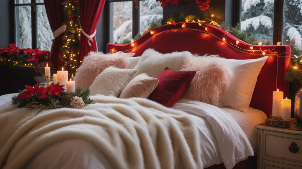 Whether you choose velvet bedding, faux-fur layers, string lights, or minimal ornament styling, each touch adds personality and holiday spirit without overwhelming the room. The key is to layer textures thoughtfully and incorporate lighting that makes the space glow with gentle, romantic warmth. These ideas not only elevate your décor but also help your bedroom photograph beautifully for Pinterest and social sharing.