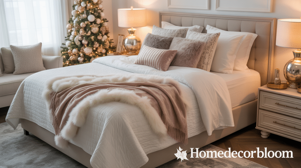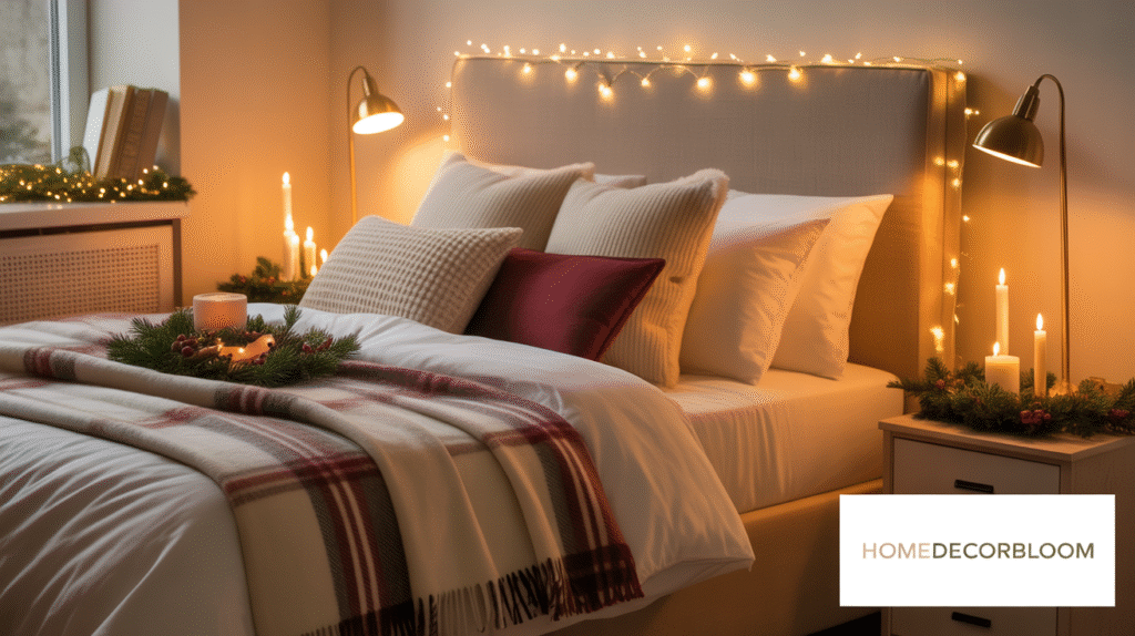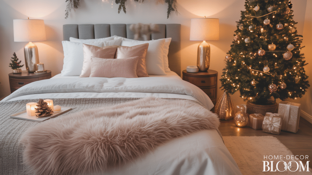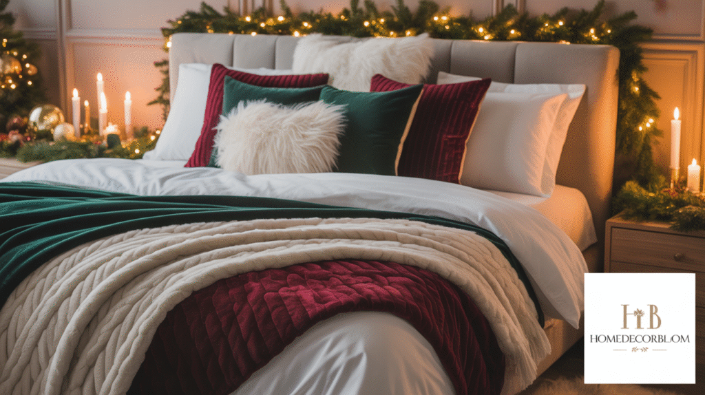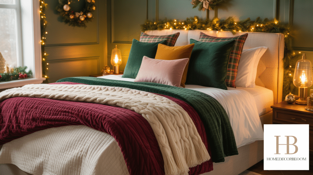 Layering different cozy materials is one of the best ways to elevate your Christmas guest room and make it feel instantly warm, comfortable, and festive. Soft textures not only enhance comfort but also create a welcoming atmosphere your visitors will love — a key element in any well-designed cozy Christmas room ideas setup.