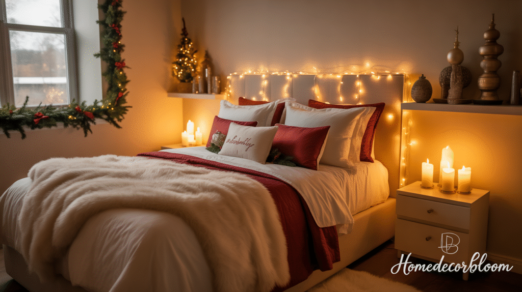 Start with high-quality sheets, then add a plush duvet, a festive quilt, and a cozy throw blanket in seasonal hues. Incorporating rich textures—like faux fur, velvet, and knit throws—creates a visually warm atmosphere, perfectly matching your cozy Christmas room ideas. Decorative pillows with subtle holiday patterns or winter colors also boost the festive charm.