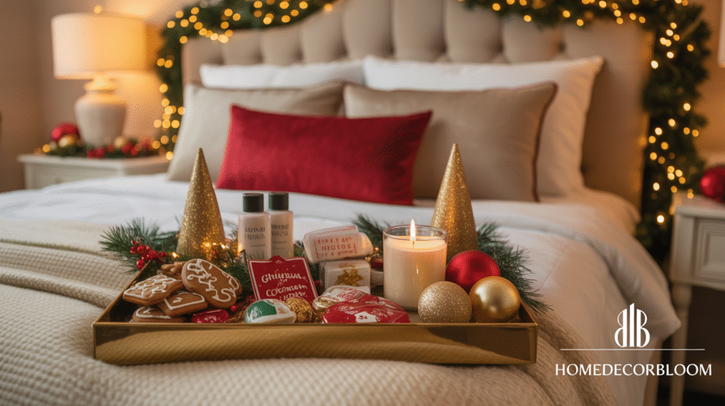 This thoughtful touch helps round out the experience, making your holiday visitors feel pampered and appreciated. When paired with your festive decorations, the welcome tray becomes an inviting highlight of your cozy Christmas guest retreat.