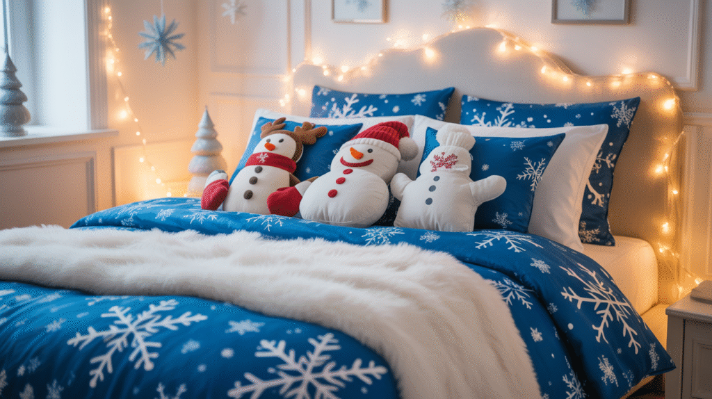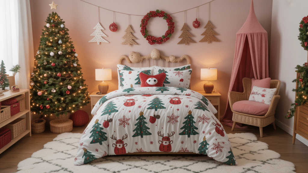 Adding cozy bedding sets the perfect foundation for a Whimsical Christmas Bedroom Ideas for Kids: Magical Winter Wonderland theme. With just one update, the entire room instantly feels more festive, imaginative, and ready for holiday fun.