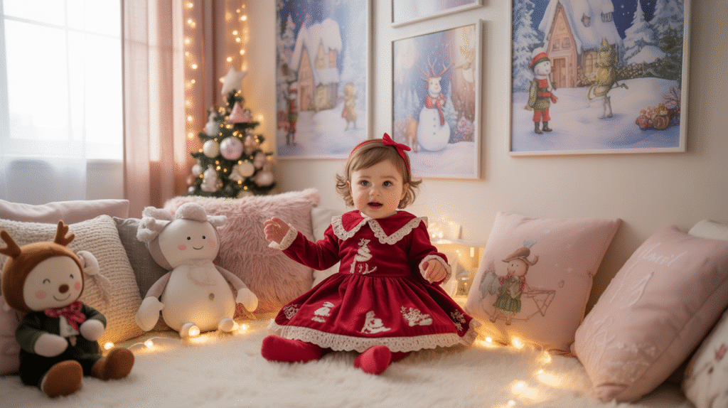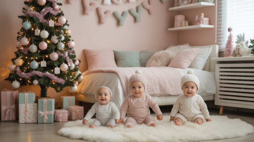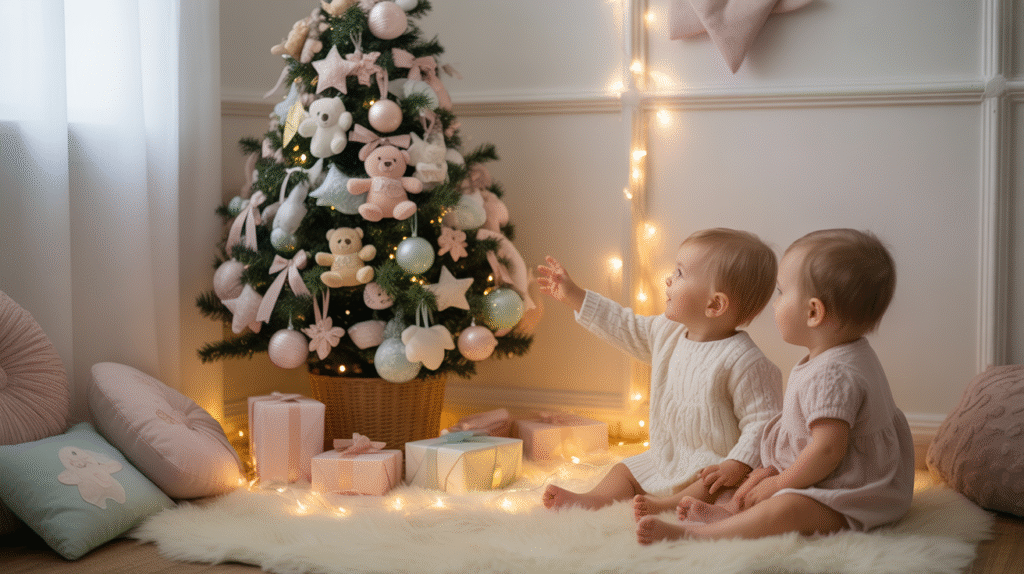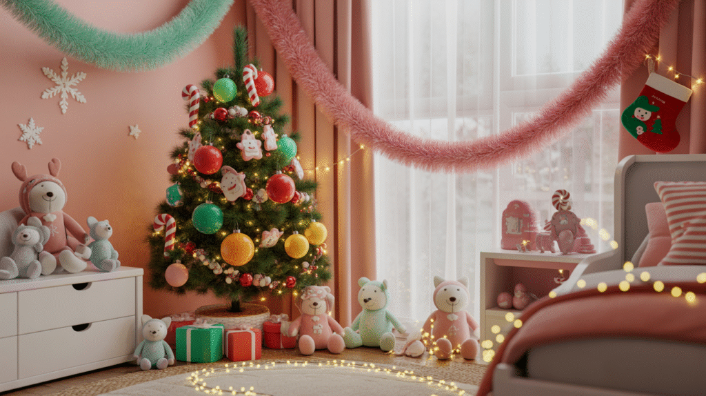 This trend focuses on creativity and comfort—bright colors, cute characters, and imaginative decor pieces that feel both festive and child-friendly. Whether it’s pastel snowflakes, adorable plush reindeer, or mini Christmas trees decorated in fun colors, every detail helps create an enchanting atmosphere. The key is blending winter magic with kid-focused charm so the room feels warm, cozy, and full of holiday delight.